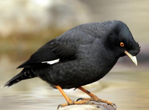 八哥体长23-28厘米。通体黑色,前额有长而竖直的羽簇,有如冠状,翅具白色翅斑,飞翔时尤为明显。尾羽和尾下覆羽具白色端斑。嘴乳黄色,脚黄色。性喜结群,常立水牛背上,或集结于大树上,或成行站在屋脊上,每至暮时常呈大群翔舞空中,噪鸣片刻后栖息。