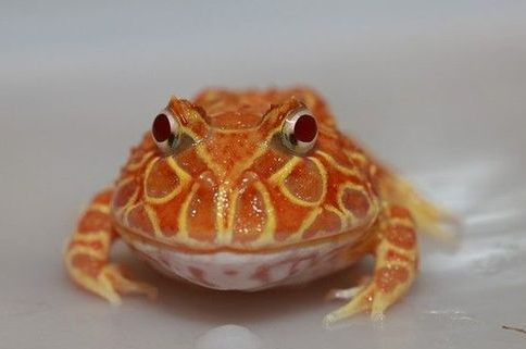 角蛙肤色艳丽,头上有角状突起,外形狰狞可怕,常见的种类有绿角蛙、黄金角蛙、钟角蛙、蝴蝶角蛙、霸王角蛙等,适温环境为26-29摄氏度,角蛙是两栖类动物,在陆地、水里皆可生活,常表现出与环境的颜色相近,不被敌害所发现,从而保护自己。