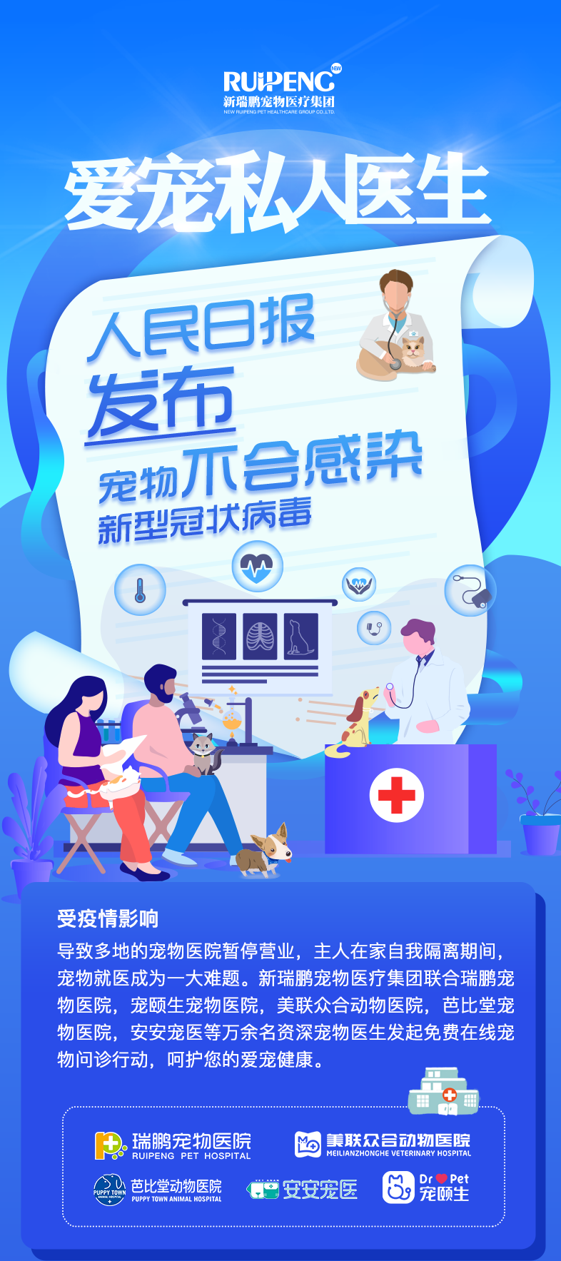 瑞鹏宠物医院爱宠私人医生携手宠物共同抗疫 发布时间:2020-02-12 17:29:47 来源:瑞鹏宠物医院 阅读次数: 受疫情影响导致多地的宠物医院暂停营业,主人在家自我隔离期间,宠物就医称为一大难题。新瑞鹏宠物医疗集团联合瑞鹏宠物医院,宠颐生宠物医院,美联众合动物医院,芭比堂宠物医院,安安宠医等万余名资深宠物医生发起免费在线宠物问诊行动,呵护您的爱宠健康。 上一篇:瑞鹏宠物医院带您了解宠物冠状病毒 下一篇:疫情期间,宠物(狗、猫)生病了怎么办? 相关推荐 热门知识 狗狗(258) 猫咪(254) 宠物吃什么(228) 行为训练(61) 宠物价格(59) 喂养(56) 绝育(45) 兔子(42) 疫苗(42) 泰迪(38) 更多>>